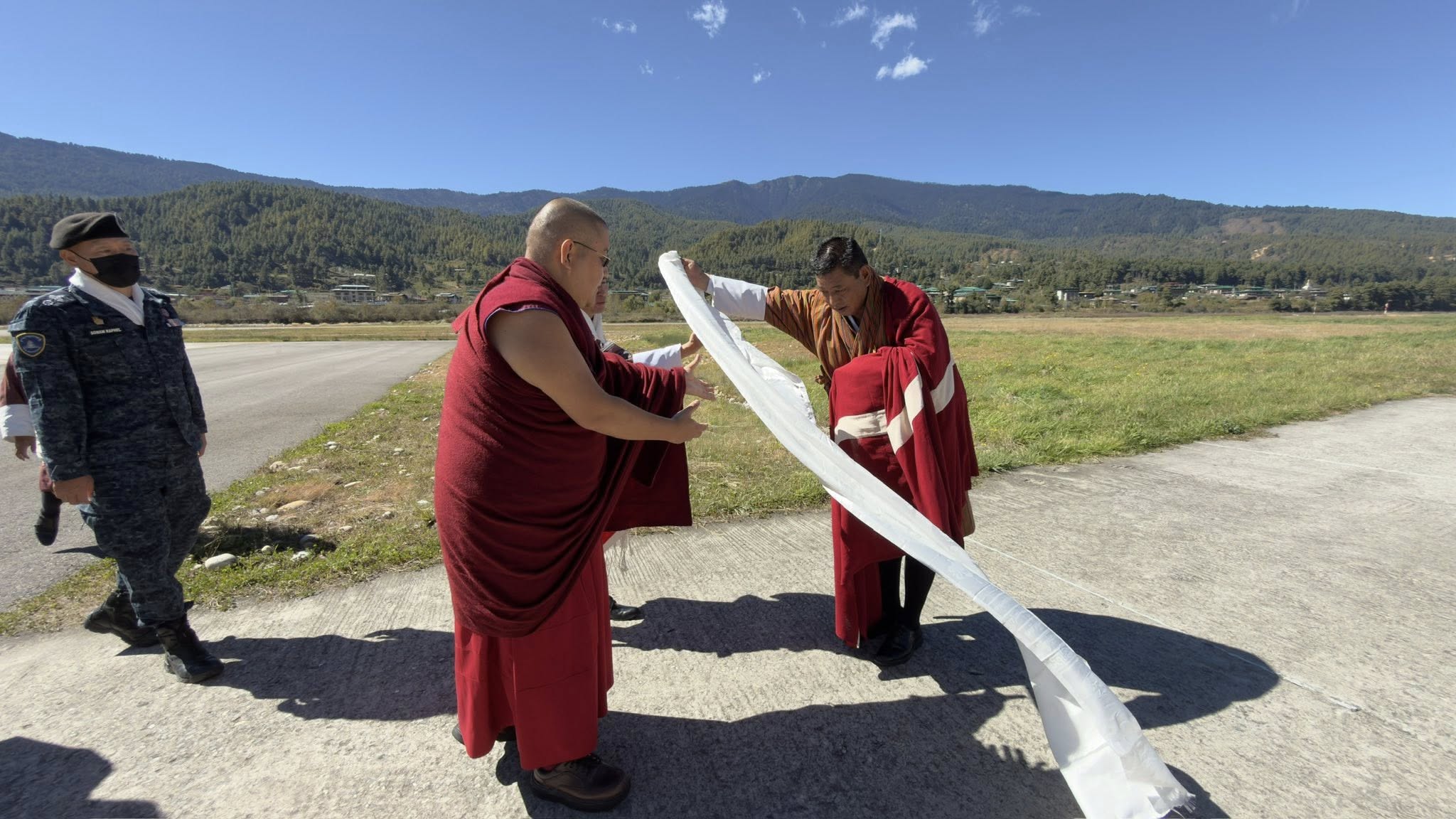 H.E. Ling Rinpoche Warmly Received at Bumthang Airport by Honorable Governor, Dignitaries and Members of Local Tibetan and Bhutanese Communities