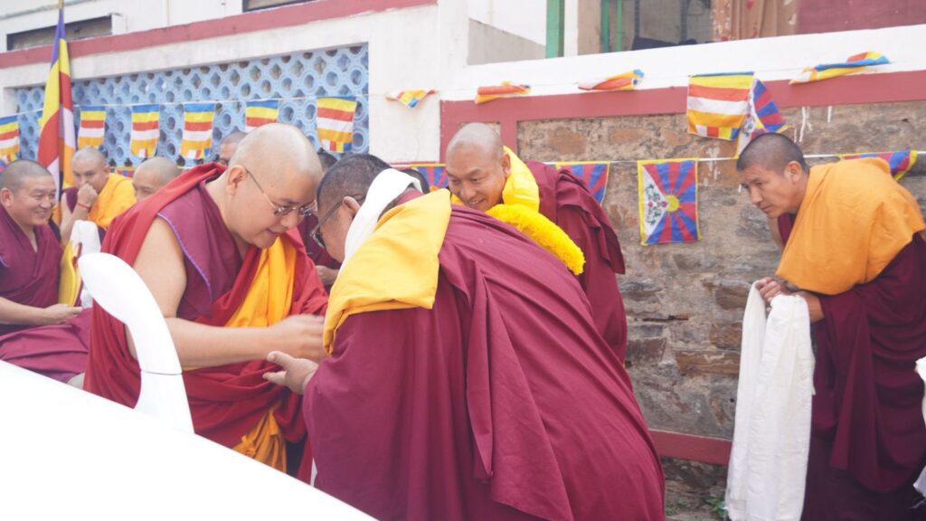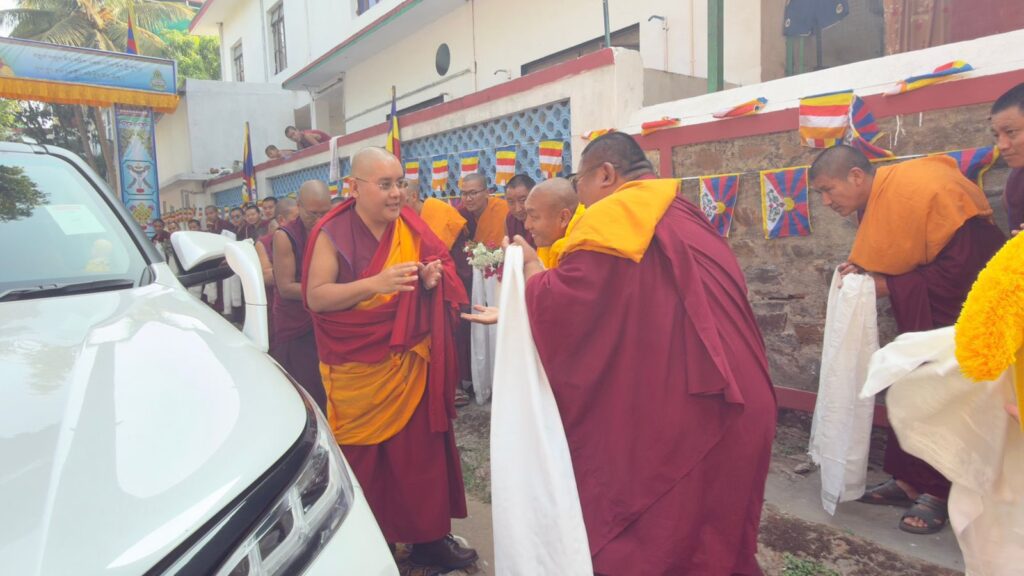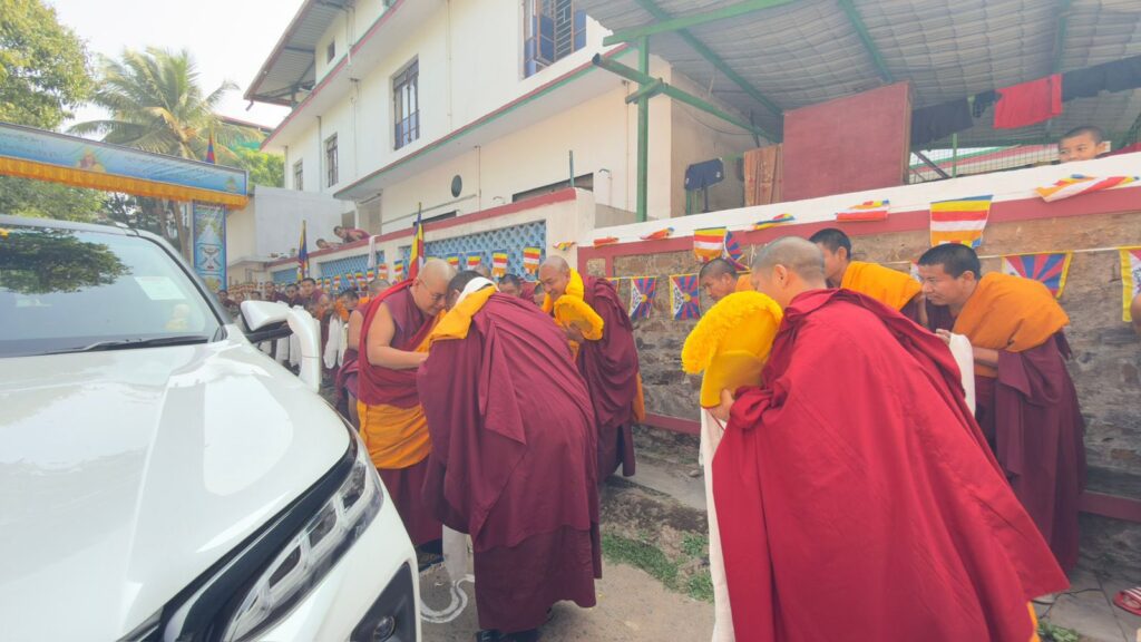 H.E. Ling Rinpoche Warmly Welcomed at Drepung Loseling Nyare Khangtsen and Gives Inspiring Teachings to Monks
