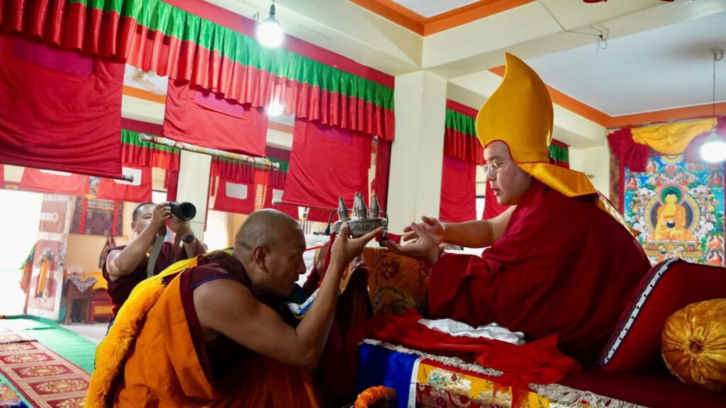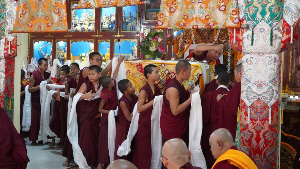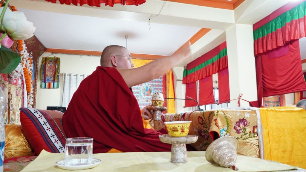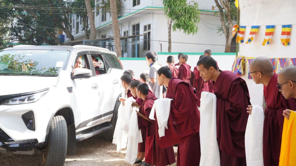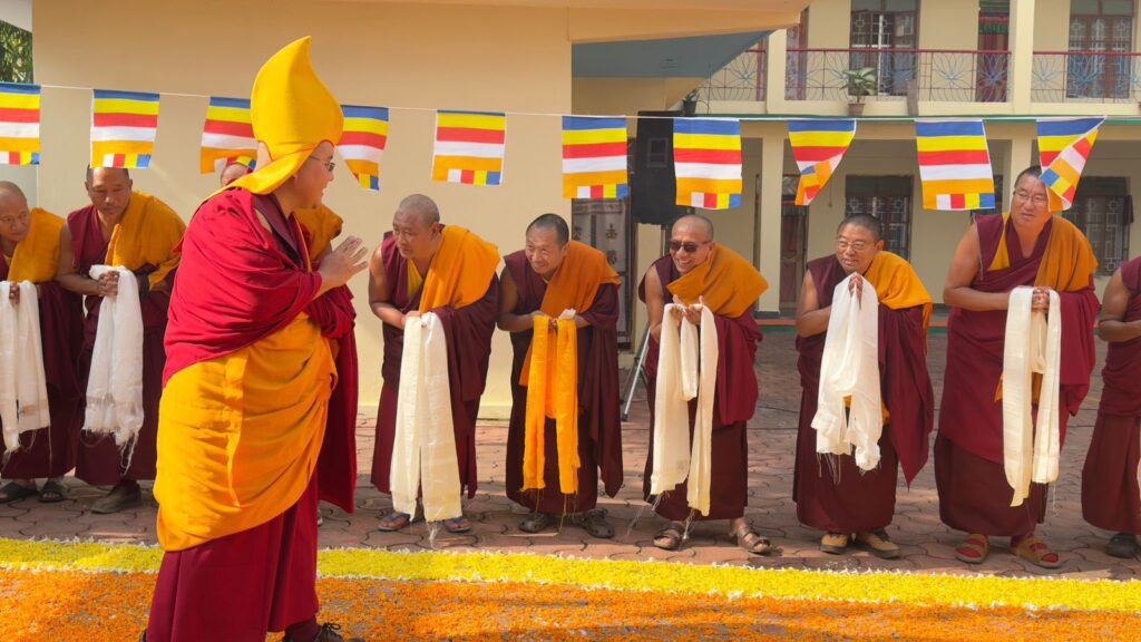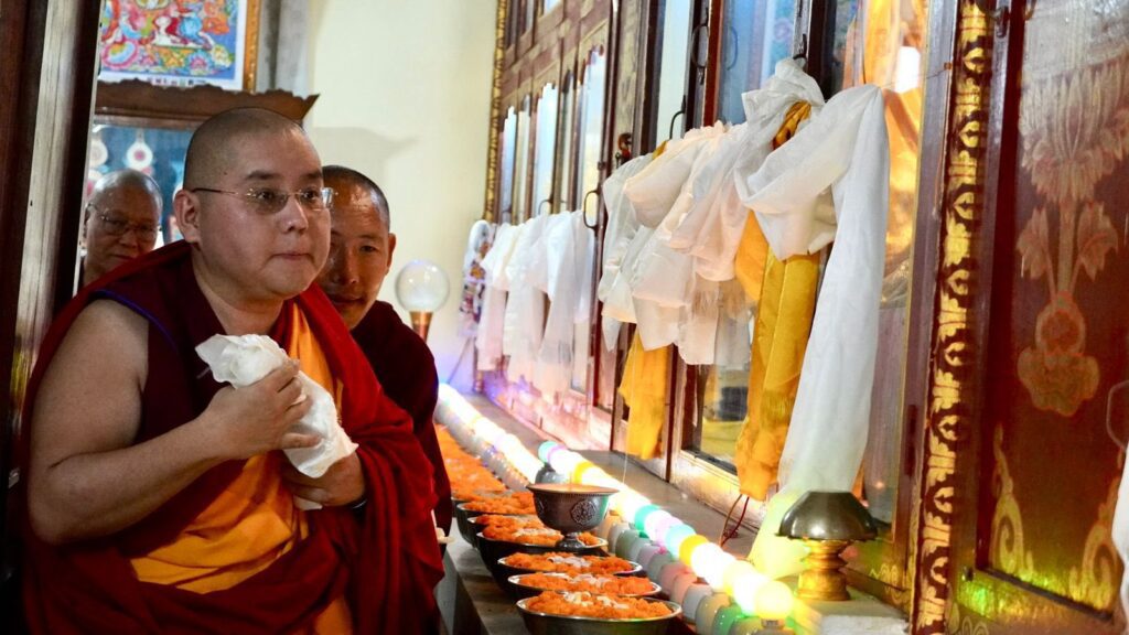 ࿑ ཕྱི་ལོ་༢༠༢༥ ཕྱི་ཟླ། ༡༢ ཚེས། ༢༢ ཉིན་༸སྐྱབས་རྗེ་ཡོངས་འཛིན་གླིང་མཆོག་སྤྲུལ་རིན་པོ་ཆེ་མཆོག་འབྲས་སྤུངས་ཉག་རེ་ཁང་ཚན་དུ་ཆིབས་བསྒྱུར་སྐབས་ཁང་ཚན་འདི་ཉིད་ཀྱི་རྒྱལ་སྲས་བླ་སྤྲུལ་ཁག་དང་། བཀའ་རབ་འབྱམས་དགེ་བའི་གཤེས་གཉེན་འདུས་ཚོགས་དམངས་དང་བཅས་པས་ཕེབས་བསུ་སེར་སྦྲེངས་ཀྱི་སྔོན་བསུས་ཏེ་གཙུག་ལག་ཁང་དུ་གནས་གཟིགས་དང་། སྣང་གསལ་མར་མེ་ཞལ་འབྱེད། འདུས་མང་ལ་བཀའ་སློབ་སྩལ་སྐབས། །