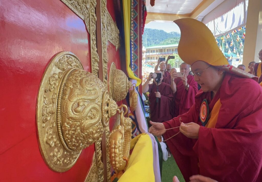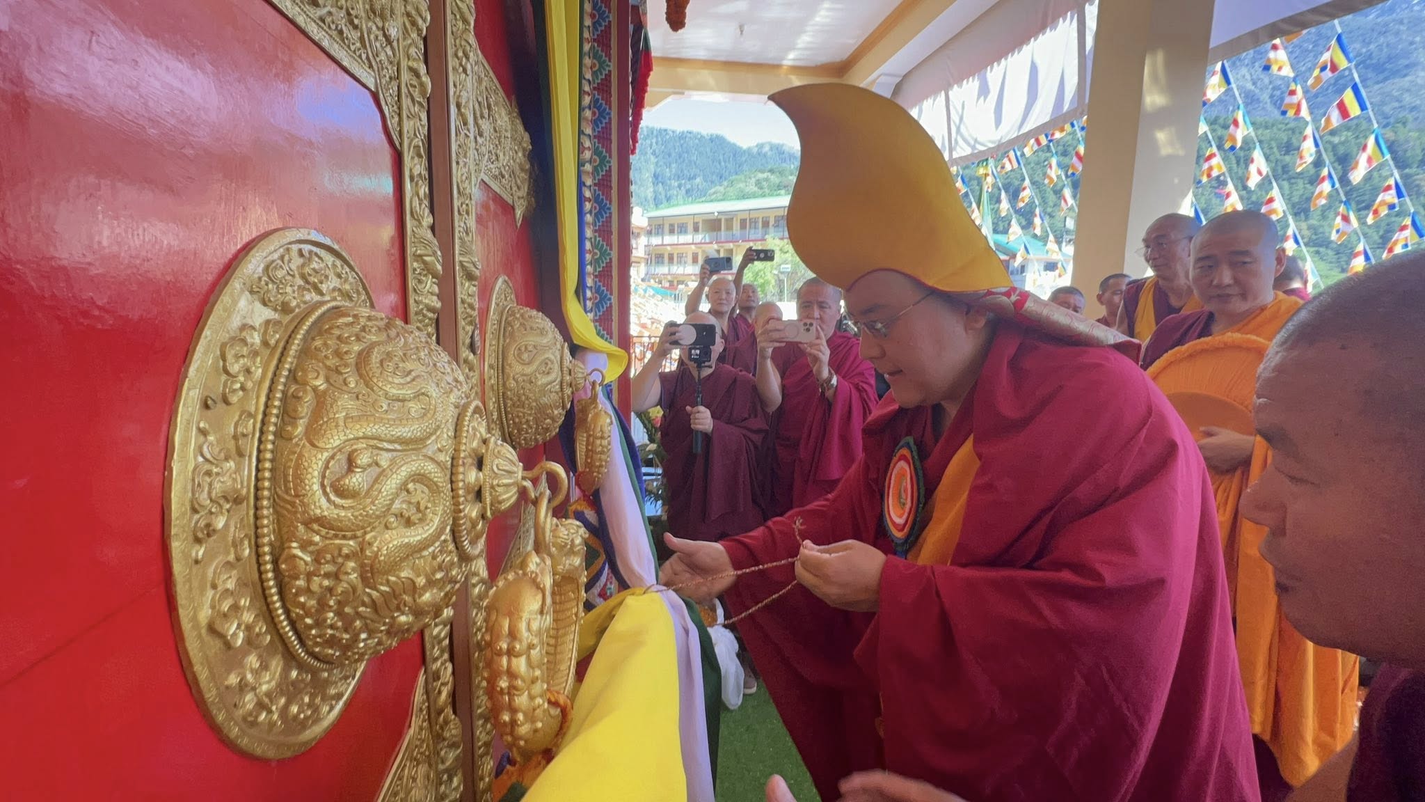༄༅། །ཕྱི་ལོ། ༢༠༢༦ ཟླ། ༤ ཚེས། ༡༥ ཉིན། ། ༸སྐྱབས་རྗེ་ཡོངས་འཛིན་གླིང་མཆོག་སྤྲུལ་རིན་པོ་ཆེ་མཆོག་ནས་བཙུན་དགོན་དགའ་ལྡན་ཆོས་གླིང་གི་ནང་བསྟན་སློབ་གཉེར་ཁང་གི་གཙུག་ལག་ཁང་གསར་བཞེངས་ལེགས་གྲུབ་ཟིན་པའི་དབུ་འབྱེད་མཛད་སྒོའི་དབུ་བཞུགས་སུ་ཆིབས་བསྒྱུར་གྱིས་རྟེན་གཙོ་ཁག་ལ་སྙན་ཤལ་དང་། སྣང་གསལ་མར་མེ་ཞལ་འབྱེད་གནང་ཞིང་། དབུ་མ་རབ་འབྱམས་པའི་ཕྱག་འཁྱེར་གསོལ་སྩལ་དང་། དུས་རབས་འདི་དང་འཚམས་པའི་སོ་ཐར་གྱི་སྡོམ་པ་ཇི་ལྟར་སྲུང་ཚུལ་དང་། སོ་ཐར་གྱི་སྡོམ་པའི་ཕན་ཡོན་བཅས་ཀྱི་སྐོར་བཀའ་སློབ་གསོལ་སྩལ། བཙུན་མ་ཚོས་ཆོས་རའི་ནང་དམ་བཅའ་ཚོགས་བཞིན་པར་གཟིགས་སྐོར་གནང་སྐབས། །