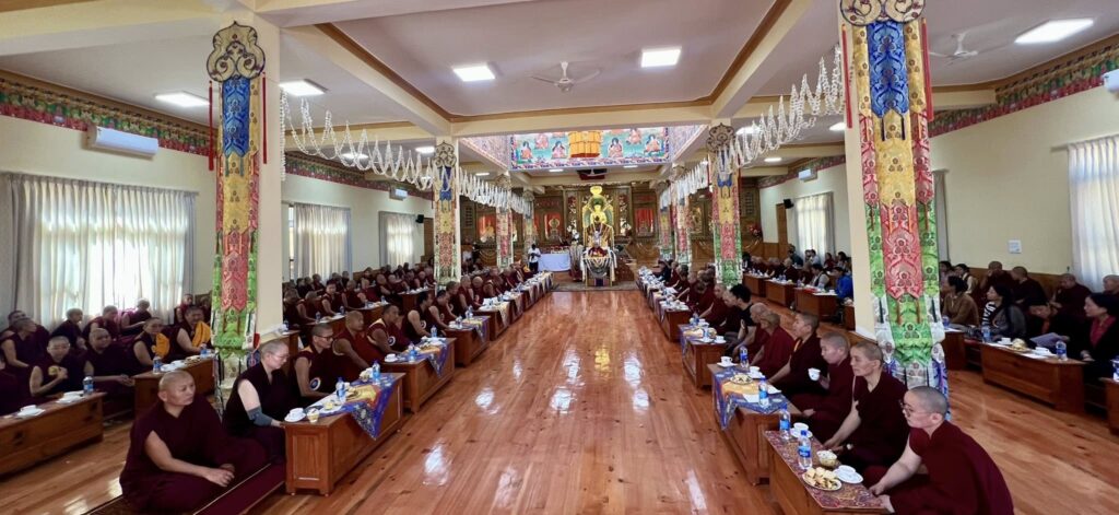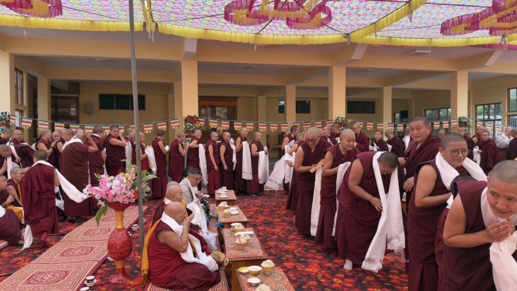On this occasion, Rinpoche conferred graduate degrees upon the nuns and offered profound teachings on the proper observance of the Pratimoksha (individual liberation) vows in accordance with the present time, along with an explanation of the immense benefits of upholding these vows.