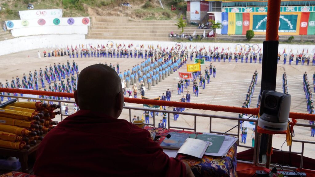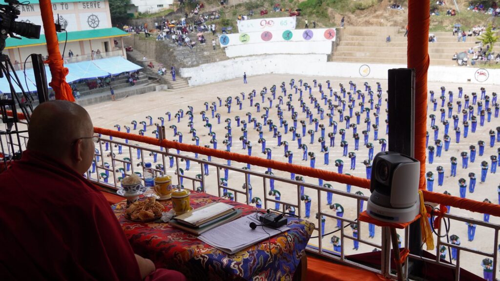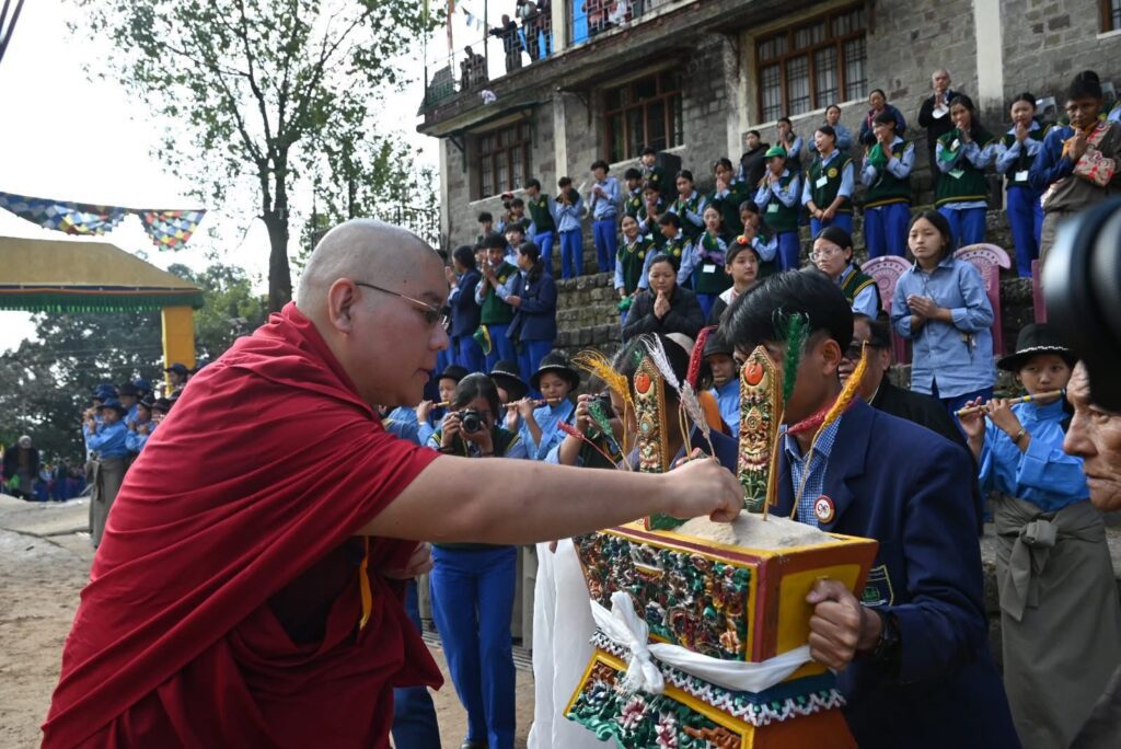 ࿑ ཕྱི་ལོ། ༢༠༢༥ ཟླ་བ། ༡༠ ཚེས། ༢༣ ཉིན་༸སྐྱབས་རྗེ་ཡོངས་འཛིན་གླིང་མཆོག་སྤྲུལ་རིན་པོ་ཆེ་མཆོག་ ནས་བོད་ཕྲུག་ཁྱིམ་སྡེ་དབུ་བརྙེས་ནས་ལོ་ངོ་༦༥ འཁོར་བའི་དུས་དྲན་གྱི་མཛད་སྒོའི་དབུ་བཞུགས་སུ་ཆིབས་བསྒྱུར་བཀའ་དྲིན་བསྐྱངས་སྐབས་དགེ་ལས་སློབ་ཕྲུག་ཡོངས་ནས་་དགའ་བསུའི་འཚམས་འདྲི་དང་། ཕེབས་བསུ་རྔ་རོལ་དབྱངས་ཀྱི་སྔོན་བསུས་བཞུགས་ཁྲིར་འཁོད་། བཀའ་སློབ་སྩལ་དོན། ཤེས་ཡོན་གྱི་གལ་གནད་དང་། སྤྱི་ཚོགས་ནང་གཟེངས་སུ་ཐོན་པའི་ཡ་རབས་བཟང་སྤྱོད་ལྡན་པའི་མི་སྣ་བསྐྱེད་སྲིངས་དགོས་རྒྱུ་དང་། གཙོ་ཆེ་ ༸གོང་ས་༸ལྷ་མིའི་རྣམ་འདྲེན་༸རྒྱལ་དབང་ཐམས་ཅད་མཁྱེན་ཅིང་གཟིགས་པ་ཆེན་པོ་མཆོག་འདི་ལོར་དགུང་གྲངས་ ༩༠ ལ་ཕེབས་པའི་དགའ་སྟོན་གྱི་རྟེན་འབྲེལ་ལ་བོད་མིས་གཙོས་འཛམ་གླིང་ཡུལ་གྲུ་གང་ས་ནས་བྱམས་བརྩེའི་ལོར་བསྲུང་བརྩི་ཞུ་བཞིན་པ་དང་། ང་རང་ཚོས་༸གོང་ས་༸མཆོག་དང་། བོད་ཁྱིམ་གྱི་བཀའ་དྲིན་དྲན་པའི་ཐོག་ནས་སློབ་གྲྭའི་སྒྲིག་ལམ་ཀུན་སྤྱོད་ལ་གུས་བརྩི་དང་། རང་དགོས་ཀྱི་སློབ་སྦྱོང་ཧུར་ཐག་གནང་དགོས་པའི་ཐོག་ལ་བཀའ་སློབ་བཀའ་དྲིན་ཆེ་སྩལ་སྐབས། །