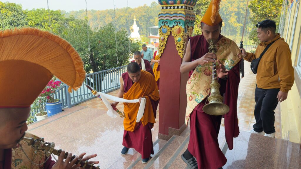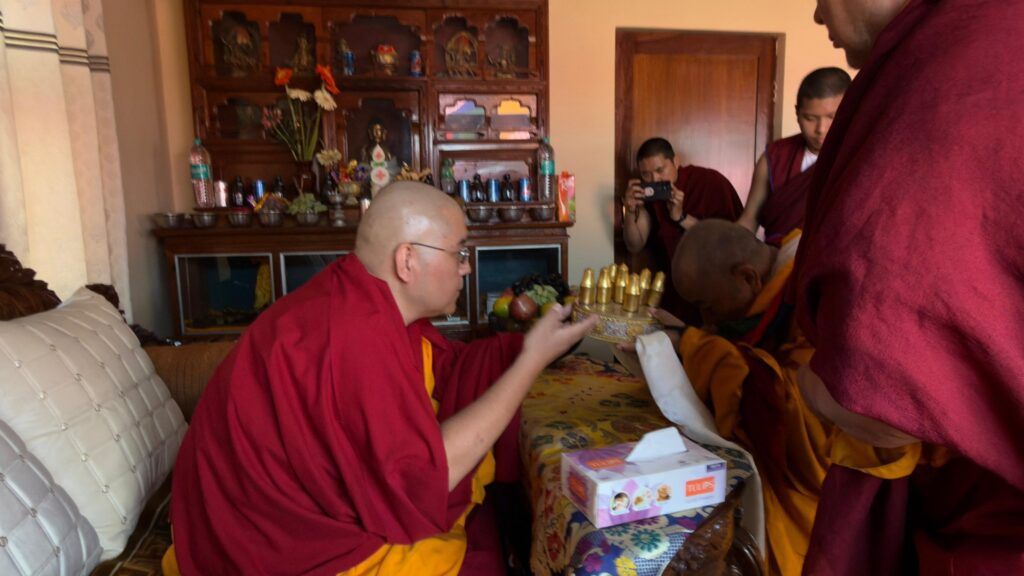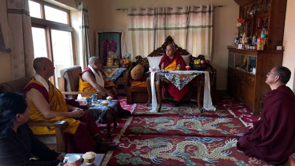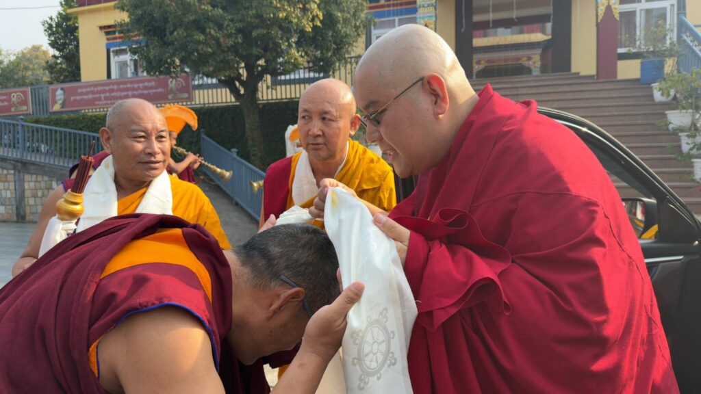 ࿑ ཕྱི་ལོ། ༢༠༢༦ ཕྱི་ཟླ། ༢ ཚེས། ༢༣ ཉིན་༸སྐྱབས་རྗེ་ཡོངས་འཛིན་གླིང་མཆོག་སྤྲུལ་རིན་པོ་ཆེ་མཆོག་སྡེ་ར་སྡུན་ལྷོ་ཁ་གོང་དཀར་ཆོས་སྡེའི་དགོན་པར་ཆིབས་བསྒྱུར་སྐབས་སྤྱན་རྒྱ་སྤོས་སྣེས་སྔོན་བསུས་ཏེ་དགོན་པའི་གཙུག་ལག་ཁང་དུ་གནས་གཟིགས་དང་རབ་གནས་སྩལ་ཅིང་དགོན་པའི་མཁན་རིན་པོ་ཆེ་མཆོག་ནས་མཎྜལ་སྐུ་གསུང་ཐུགས་རྟེན་འདེགས་འབུལ་ཞུ་སྐབས་བཅས་ཀྱི་སྐུ་པར། །