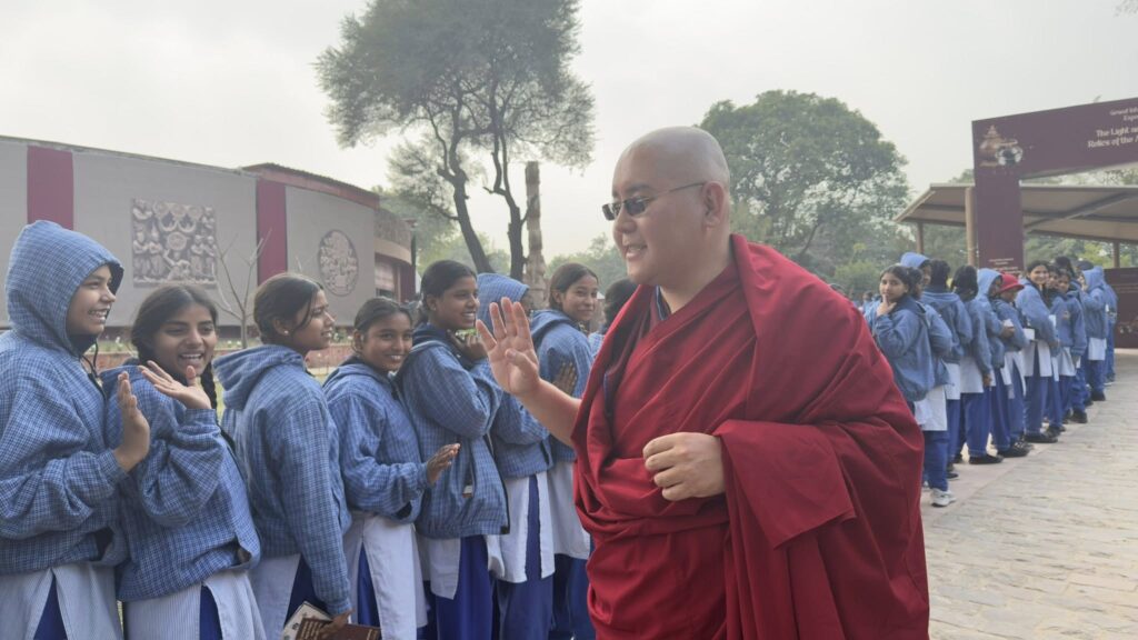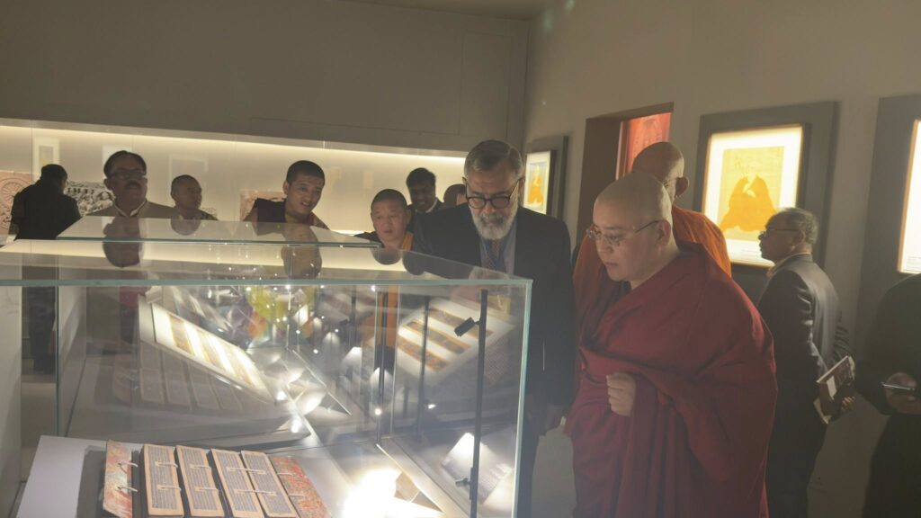 ࿑ ཕྱི་ལོ། ༢༠༢༦ ཟླ་བ། ༡ ཚེས། ༣ ཉིན་རྒྱ་གར་དབུས་རིགས་གཞུང་ལྷན་ཁང་ནས་གོ་སྒྲིག་འོག་རྒྱ་གར་གྱི་རྒྱལ་ས་ལྡི་ལིར་”དེ་སྔོན་སངས་རྒྱས་ཀྱི་རིང་བསྲིལ་ལྷན་དུ་བཞུགས་པའི་རྩ་ཆེའི་ནོར་བུའི་རིགས་བརྒྱ་ཕྲག་མང་པོ་”དེ་སྔོན་རྒྱ་གར་དབྱིན་ཇིའི་འོག་ཏུ་ཡོད་པའི་སྐབས་ལ་གཏེར་རྫས་སྔོག་འདོན་བྱེད་མཁན་གྱི་དབྱིན་ཡུལ་དུ་དབོར་འདྲེན་བྱས་པ་ཁག་སླར་ཡང་རྒྱ་གར་དབུས་གཞུང་ནས་ཐུགས་འཁུར་ཆེ་བཞེས་ཐོག་གནའ་རྫས་དེ་དག་རྒྱལ་ནང་དུ་དབོར་འདྲེན་གྱི་བཞུགས་སུ་གསོལ་བའི་མཛད་སྒོའི་ཐོག་རྒྱ་གར་གྱི་སྲིད་བློན་ཤྲིར་ན་རིན་དྷ་མོ་དྷི་མཆོག་དབུ་བཞུགས་ཐོག་ཆེད་ཕེབས་ཀྱིས་བཀའ་སློབ་དང་། ༸སྐྱབས་རྗེ་ཡོངས་འཛིན་གླིང་མཆོག་སྤྲུལ་རིན་པོ་ཆེ་མཆོག་གདན་ཞུས་ལྟར་མཛད་སྒོར་མཉམ་ཞུགས་གནང་བ་དང་། དེ་བཞིན་སྲིད་བློན་མཆོག་ནས་ན་བཟའ་འབུལ་བཞེས་སྐབས་ཀྱི་བརྙན་པར། །