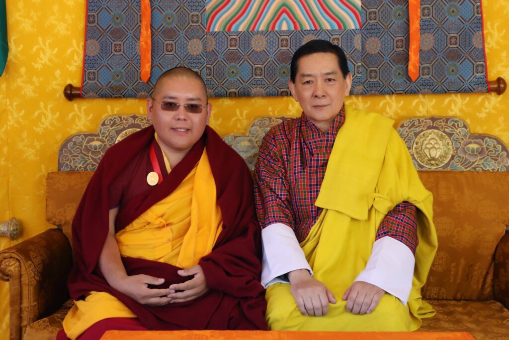 ࿑ ཕྱི་ལོ། ༢༠༢༥ ཕྱི་ཟླ། ༡༡ ཚེས། ༥ཉིན་༸སྐྱབས་རྗེ་ཡོངས་འཛིན་གླིང་མཆོག་སྤྲུལ་རིན་པོ་ཆེ་མཆོག་ནས་འབྲུག་གི་རྒྱལ་ས་ཐིམ་བུར་”འཛམ་གླིང་ཞི་བདེའི་སྨོན་ལམ་ཆེན་མོ་”ཉིན་གཉིས་པའི་ཉིན་འབྲུག་རྒྱལ་བཞི་པ་དཔལ་མི་དབང་མངའ་བདག་འཇིགས་མེད་སེངྒེ་དབང་ཕྱུག་མཆོག་དང་མཇལ་འཕྲད་སྐབས་ཀྱི་བརྙན་པར།