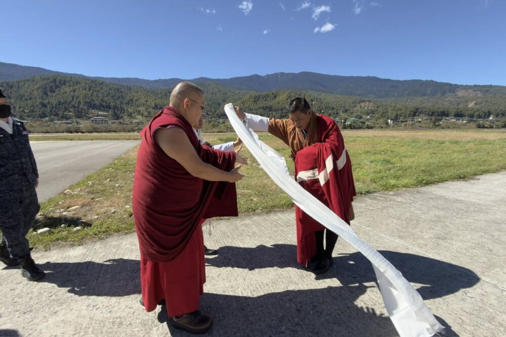 H.E. Ling Rinpoche Warmly Received at Bumthang Airport by Honorable Governor, Dignitaries and Members of Local Tibetan and Bhutanese Communities