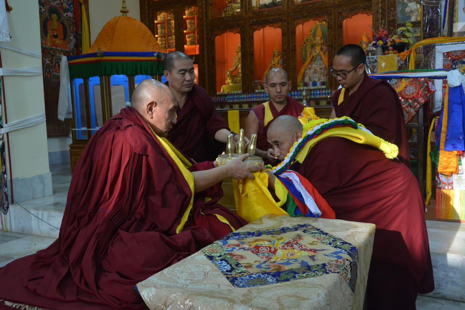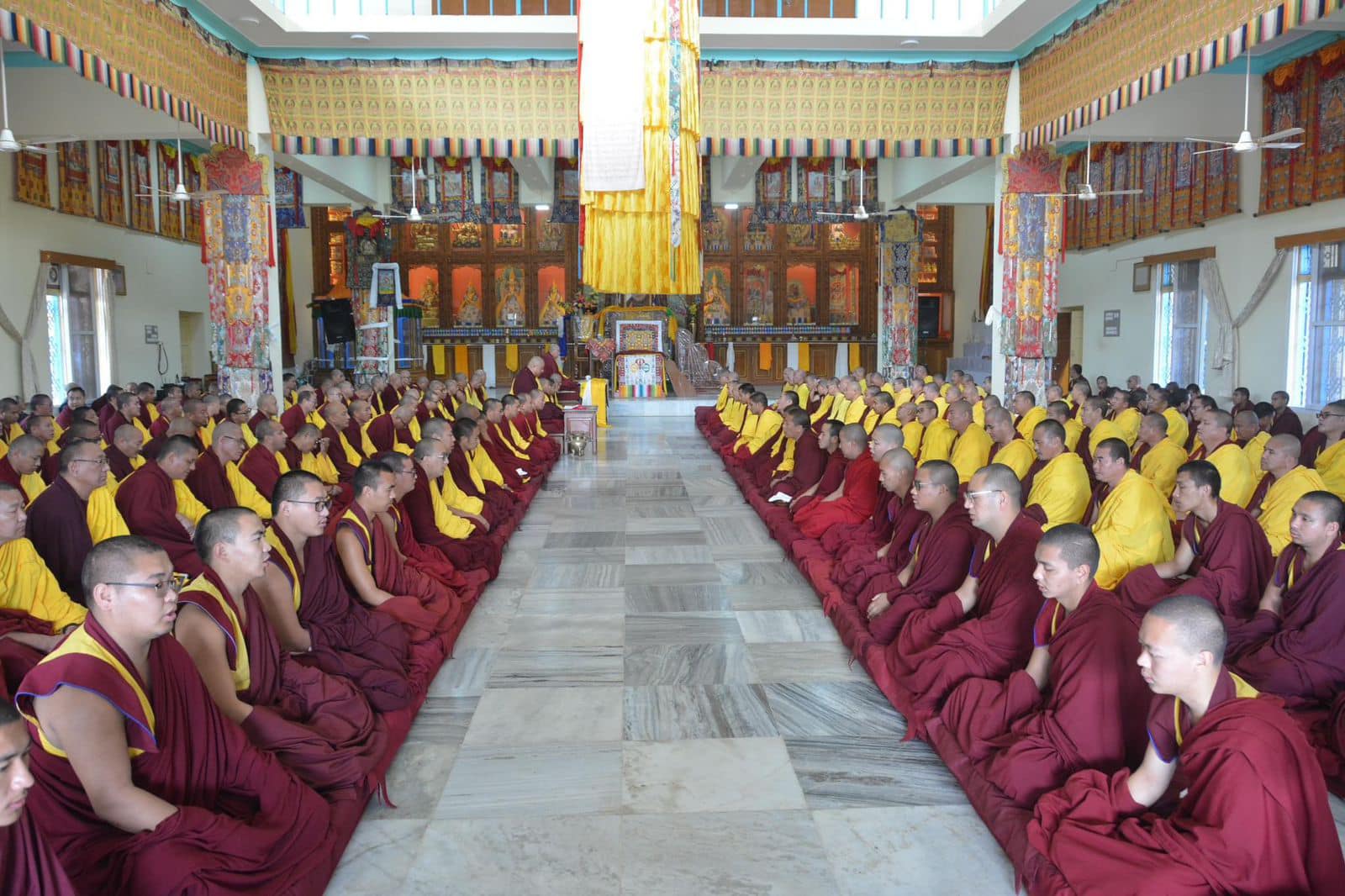On 15th January, H.E. Ling Rinpoche’s Tutor Geshe Thubten Rapgay was enthroned as Lama Umze and Junior Abbott of Gyumed Tantric Monastic College, during an official ceremony at Gyumed Tantric College in Hunsur, South India.