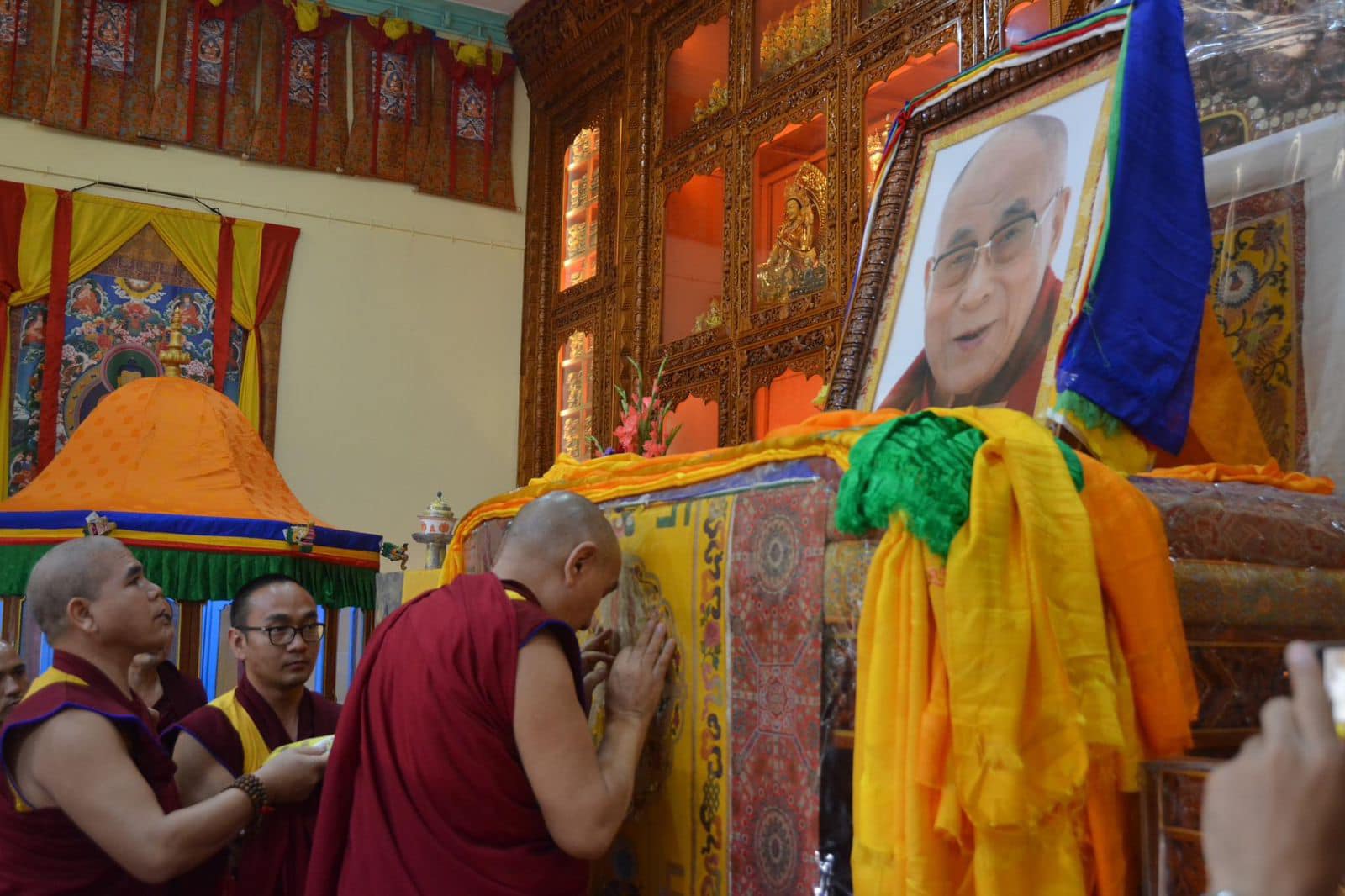 H.E. Ling Rinpoche started his first day of the Tibetan and Lunar New Year with offerings to the Three Jewels, offering khatas to Lord Shakyamuni Buddha and all the Buddhas and Bodhisattvas and to His Holiness Dalai Lama, and making prayers for world peace and the long life and perfect health of H.H Dalai Lama. Rinpoche is praying for the happiness and benefit of all sentient beings everywhere, for all their virtuous activities to be successful, and for the holy Buddha Dharma to flourish in this world. Losar Tashi Delek!