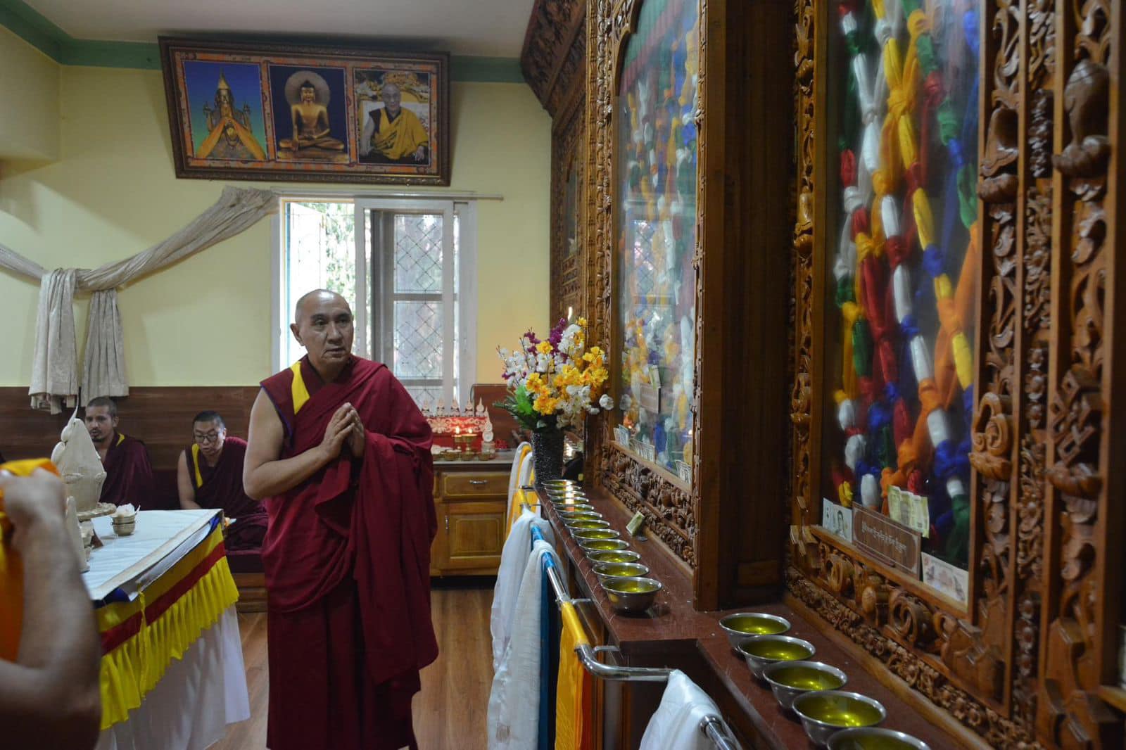 ࿑ བོད་ཤིང་འབྲུག་ལོའི་དགུང་གསར་དུས་སྟོན་ཉིན་་༸སྐྱབས་རྗེ་ཡོངས་འཛིན་གླིང་མཆོག་སྤྲུལ་རིན་པོ་ཆེ་མཆོག་ནས་མཆོག་གསུམ་རྒྱལ་བ་རྒྱ་མཚོར་གསོལ་འདེབས་སྨོན་འདུན་ཤུགས་དྲགས་དང་འབྲེལ་སྣང་གསལ་མར་མེ་ཞལ་དབྱེ་མཛད་ཅིང་། ༸གོང་ས་༸སྐྱབས་མགོན་༸རྒྱལ་བའི་དབང་པོ་ཞལ་སྔ་ནས་ཀྱི་སྐུ་པར་མཐོང་གྲོལ་རིན་པོ་ཆེ་མཇལ་དར་བཅས་ཕུལ་ཏེ་མགོན་པོ་གང་ཉིད་སྐུ་ཚེ་ཞབས་པད་བསྐལ་བརྒྱར་བརྟན་ཅིང་། ཐུགས་བསམ་ལྷུན་གྱི་འགྲུབ་པ། ཡངས་པའི་འཇིག་རྟེན་གྱི་ཁམས་འདིར་རང་བྱུང་གནོད་འཚེ་དང་། ནད་མུག་དམག་འཁྲུག་སོགས་སྙིགས་མའི་རྒུད་ཚོགས་ཅི་མཆིས་རང་སར་ཞི་ནས་འཛམ་གླིང་ཞི་བདེར་གནས་པ་དང་འགྲོ་རྣམས་ཆོས་འབྱོར་བདེ་སྐྱིད་རྫོགས་ལྡན་གྱི་དཔལ་ལ་ལོངས་སྤྱོད་པ་སོགས་ཀྱི་སྨོན་ཚིག་གསུང་སྐབས་ཀྱི་སྐུ་པར།